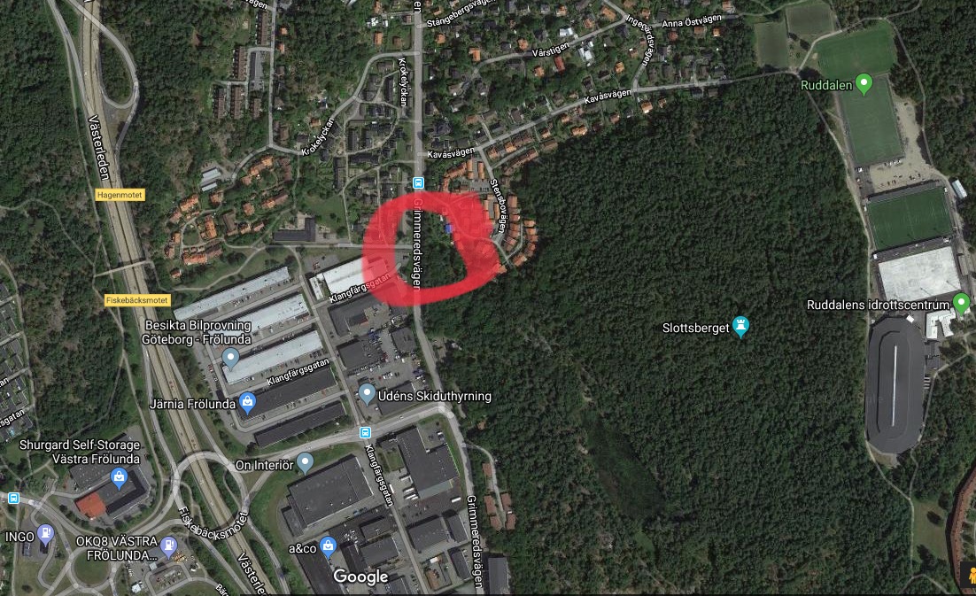Samling: Korsningen Grimmeredsvägen/Lonsegårdsvägen där löpslingan börjar.